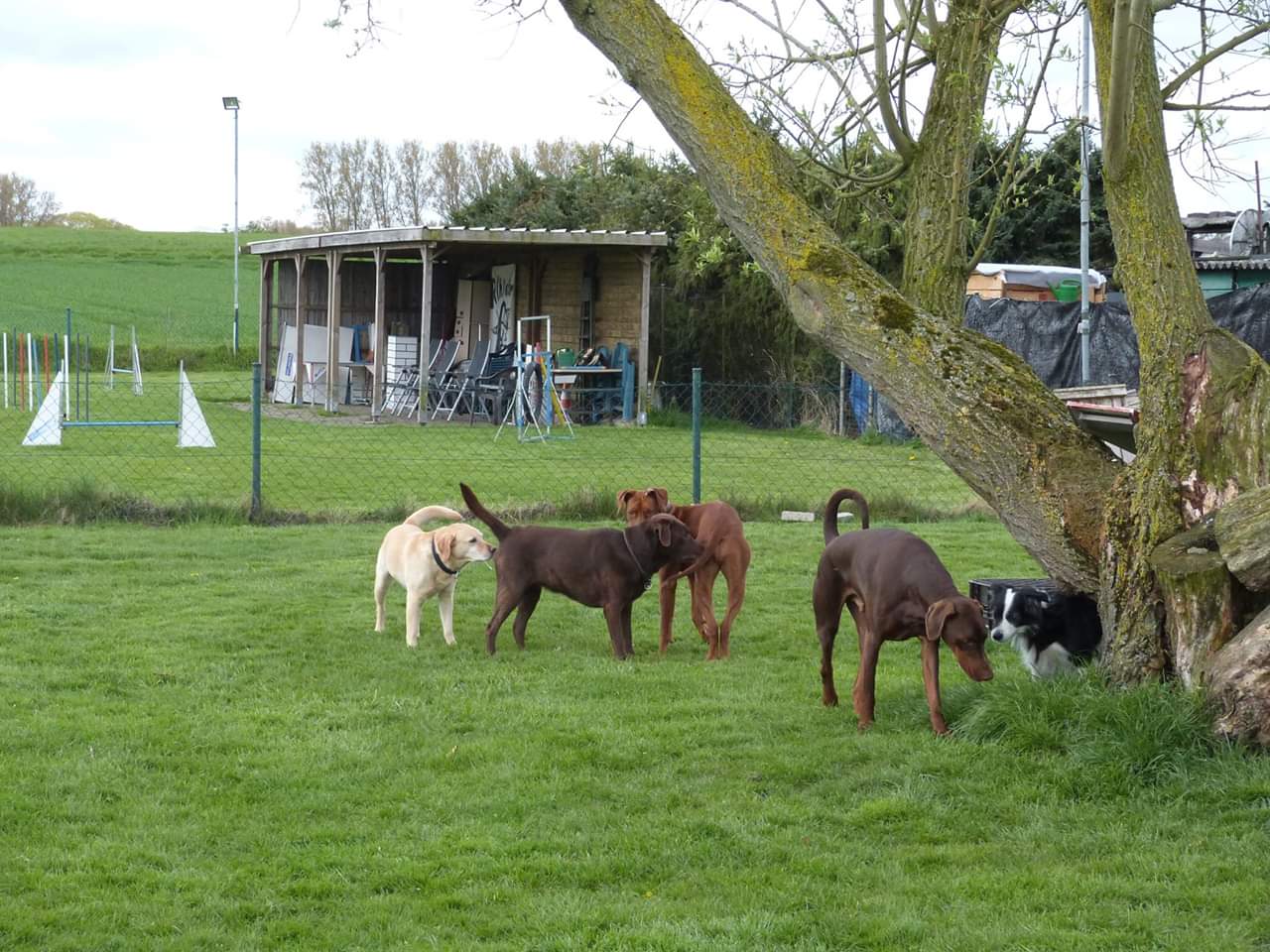 Hinter der Tenne befinden sich mehrere Wiesen auf denen die Hunde nach herzenslust toben dürfen.